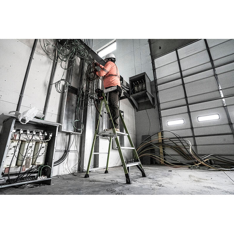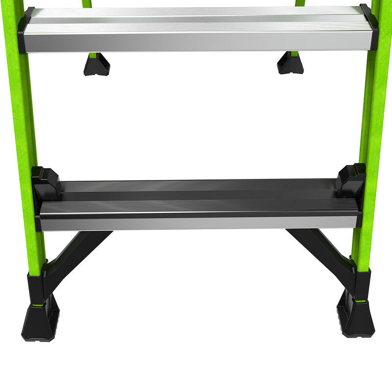 Fortress™ združuje prednosti platformnih lestev z lahkotjo in enostavnim postavljanjem stopničastih lestev, kar omogoča varno in učinkovito delo.