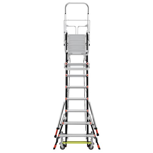 Številne industrije zahtevajo, da se strokovnjaki pri delu na določenih višinah pritrdijo na stran. Ta standard pomaga zagotavljati varnost, vendar ga je pogosto težko vzdrževati. Little Giant® Adjustable Safety Cage™ odpravlja potrebo po privezovanju. Z uporabo te lestve so dela hitrejša, varnejša in cenejša od številnih možnosti z odri.