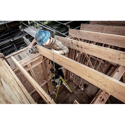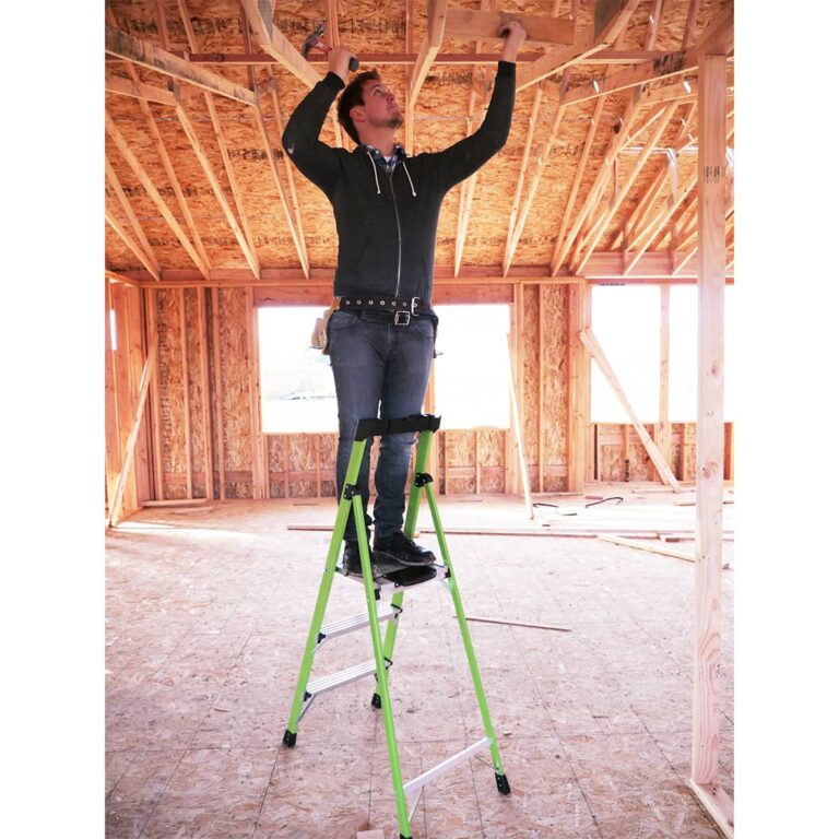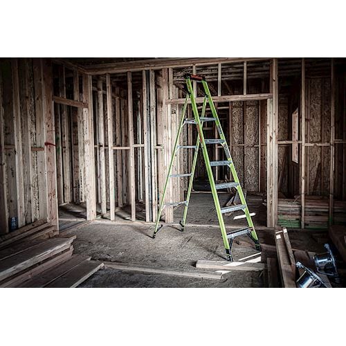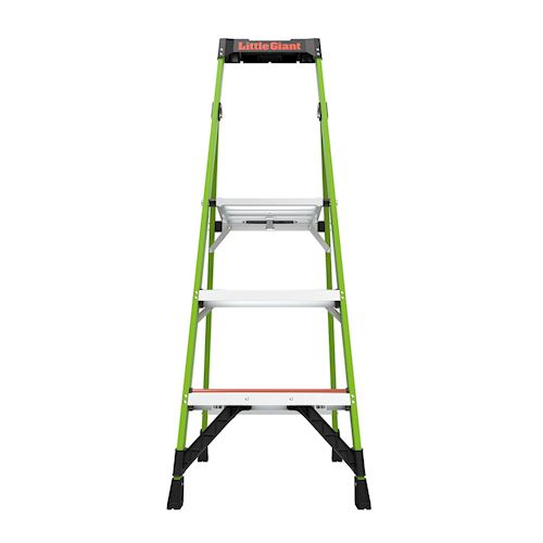 MightyLite™ Step Ladder je zasnovan za preprečevanje ali preprečevanje treh glavnih vrst poškodb, povezanih z uporabo lestev. Z zmanjšano težo se povzroči verjetnost bolečine v vratu in ramenih zaradi prenašanja težkih predmetov. Nevarni padci zaradi stanja na vrhu lestve so preprečeni z veliko stoječo platformo, ki uporabniku zagotavlja dodatno udobje. Vsak Little Giant® MightyLite™ lestev ima vgrajen sistem Ground Cue® , ki uporabniku daje zvočno-senzorično opozorilo, da tako doseže zadnji korak in da je varno sestopiti z lestve, kar je idealno za uporabo v hrupnem okolju. Lestev iz steklenih vlaken vključuje večfunkcionalni Tool Tray™ in neprevodne strani, kar je idealno za delo okoli električnih virov. Nosilnost lestve je 150 kg.